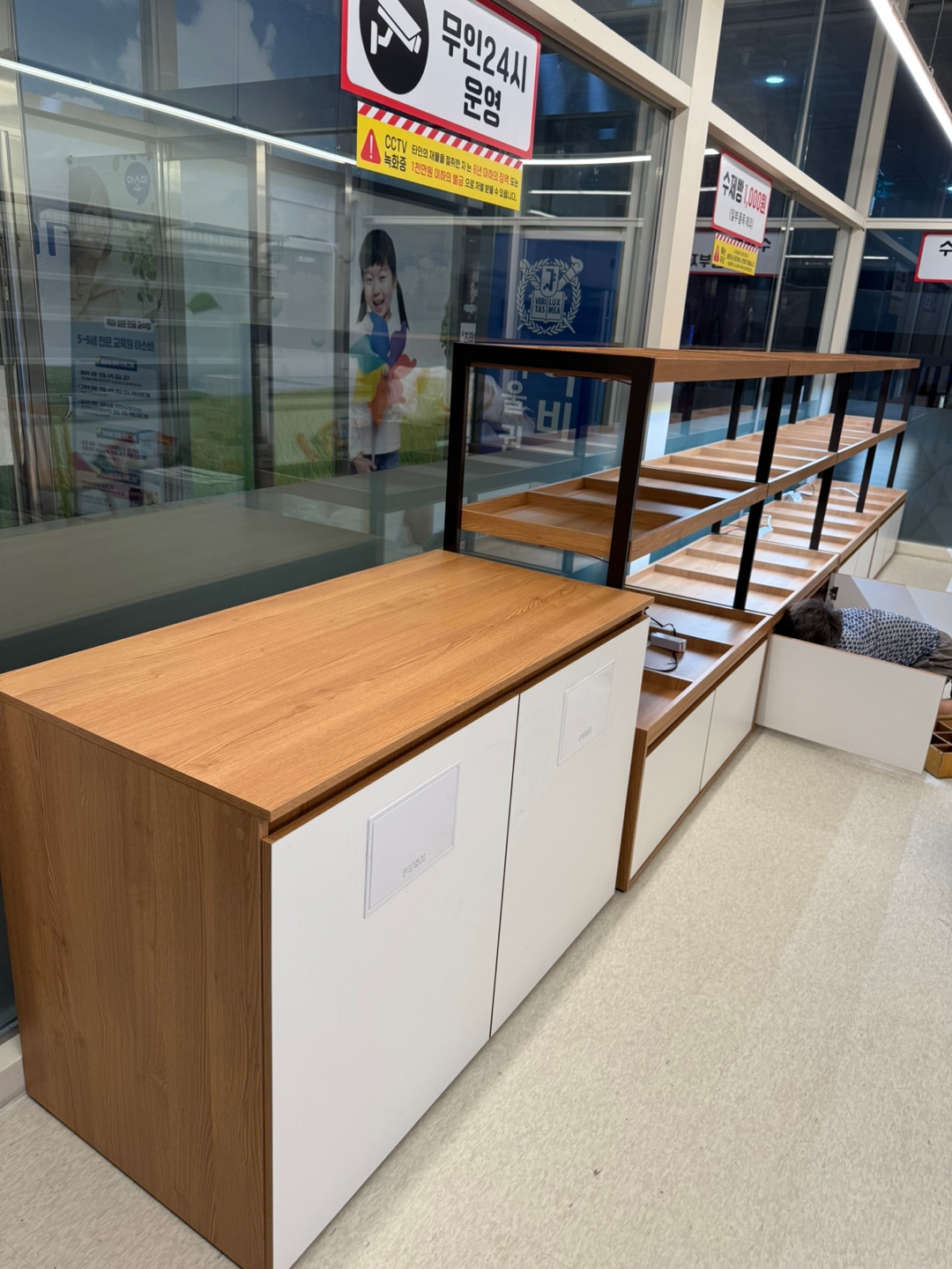 현재는 매대, 냉장고, 쇼케이스만 설치된 상태로 제품 진열과 시스템 점검을 마친 뒤 곧 오픈 예정입니다.