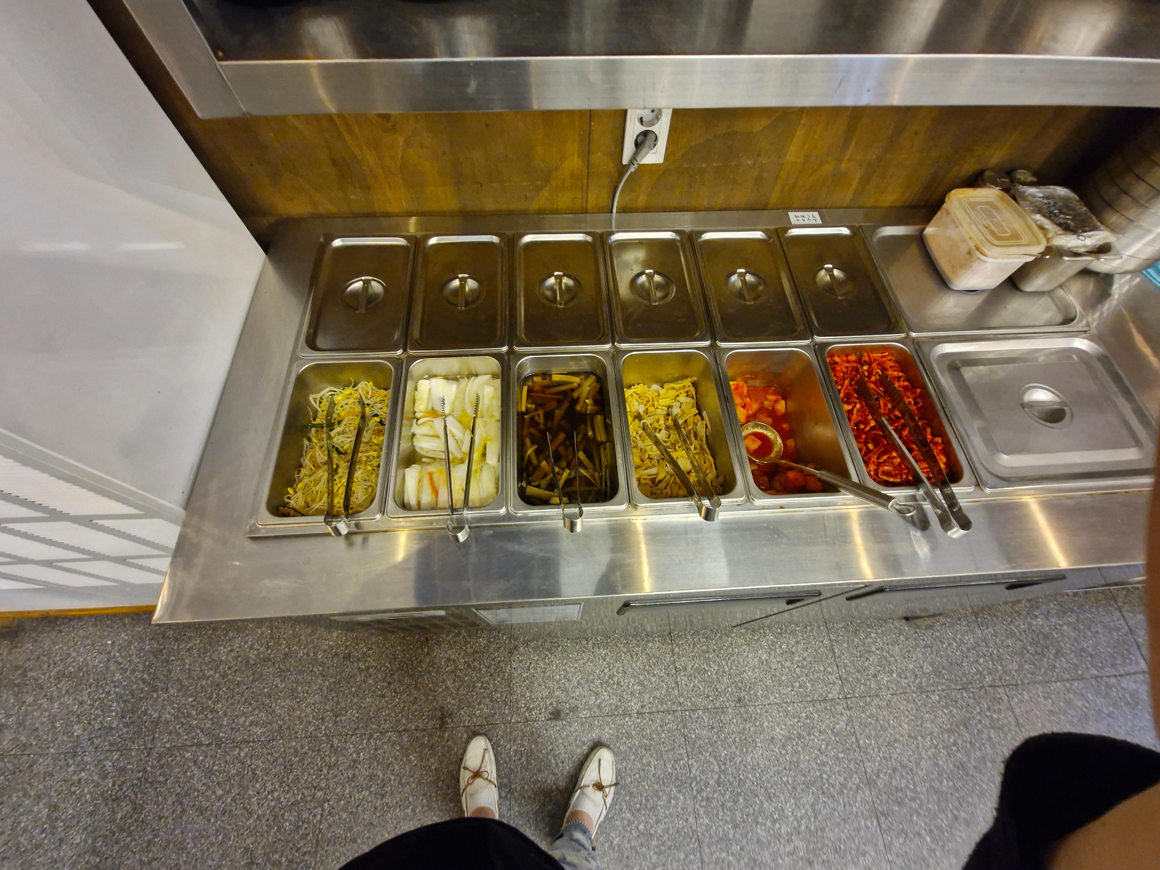 기본 반찬 셋팅된 모습입니다. 셀프바가 있어서 더 갖다먹을수 있어요.