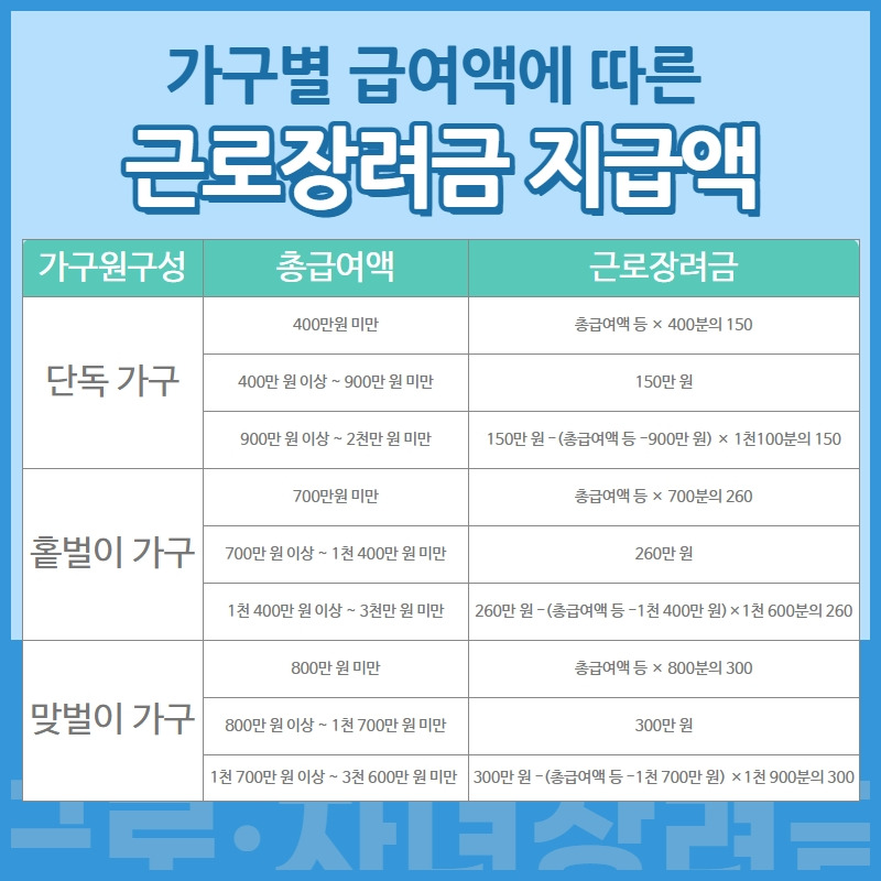 이 제도는 단순한 복지의 개념이 아니라, 노동을 유도하고 경제활동을 장려하는 ‘일하는 복지’입니다. 근로를 포기하지 않고 계속 이어갈 수 있도록 돕는 구조죠. 이러한 점에서, 청년, 1인 가구, 자영업자, 중장년층에게 매우 유용한 제도입니다.
