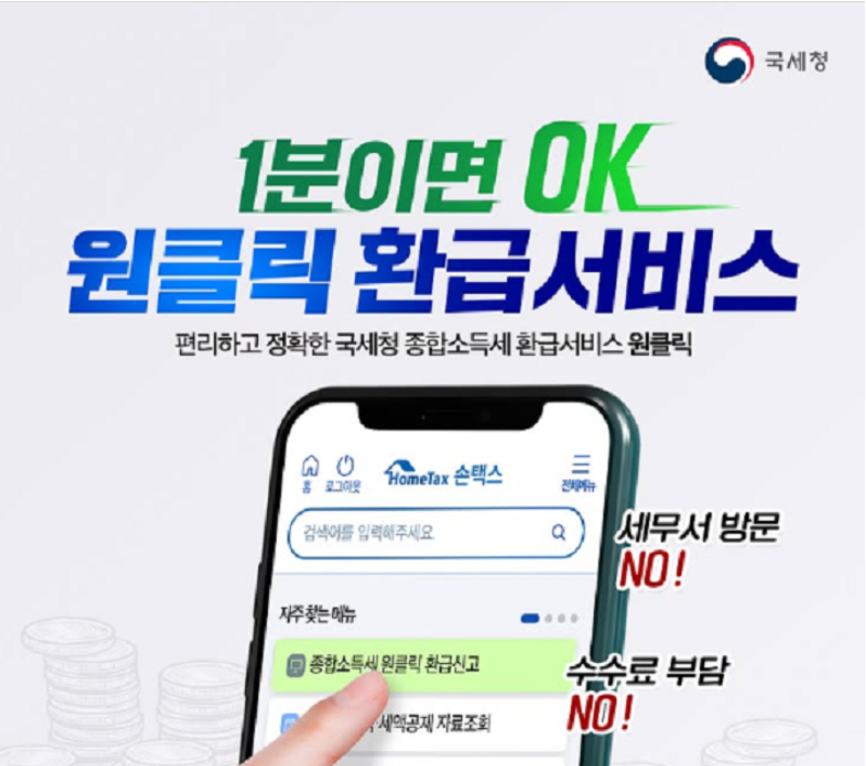 ‘원클릭 환급서비스’는 국세청이 보유한 자료를 바탕으로, 소득이 단순한 납세자에게 미리 채워진 종합소득세 신고서를 제공하고, 납세자가 그 내용을 확인 후 클릭만으로 신고 및 환급 절차를 마칠 수 있도록 만든 제도입니다.