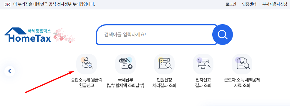 - STEP 1. 국세청 홈택스(hometax.go.kr)에 접속 후 공동인증서로 로그인
