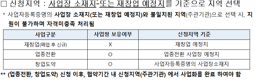 | ❷ 업종전환형 | - 기존과 다른 업종으로 재창업하려는 자- 업태 변경 필수 | 업종·업태 모두 바뀌어야 인정 |