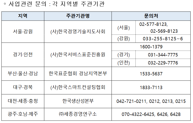 | 멘토링 및 후속 지원 | PM(프로젝트 매니저) 전담 관리, 기술 컨설팅, 판로 개척 등 |